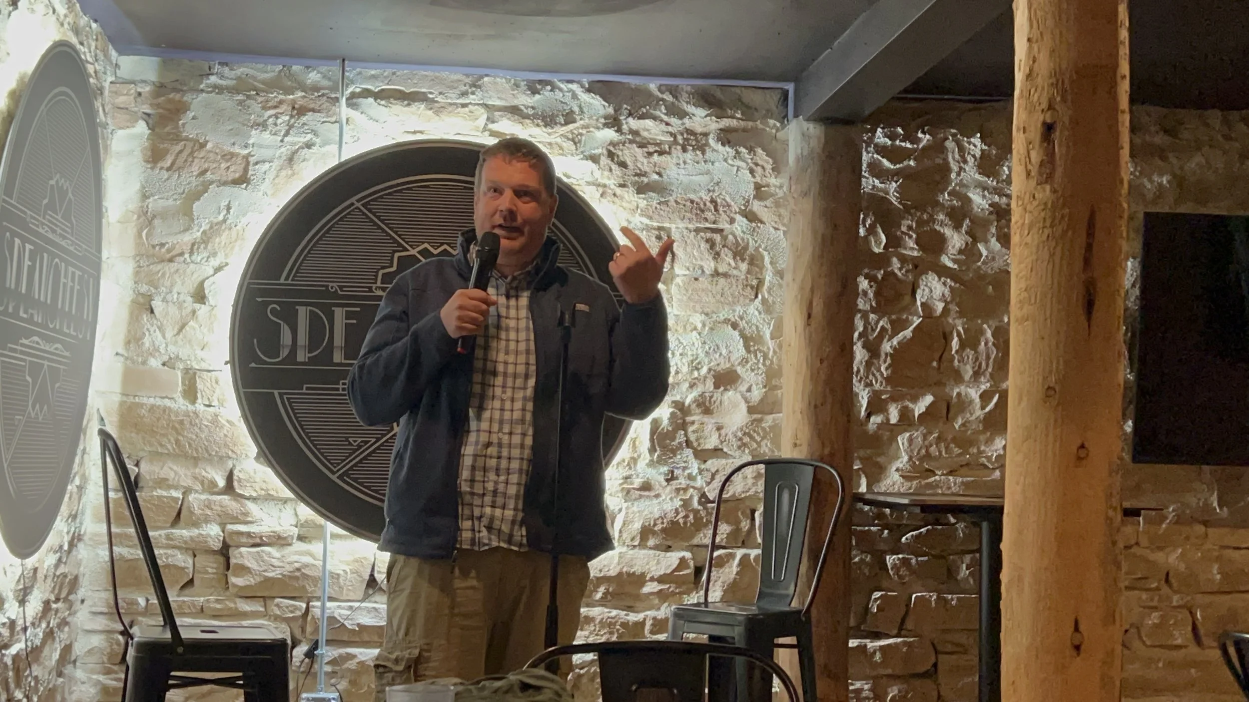Speakcheesy Pub is a small elongated basement of a pizza parlor. Honestly, it’s really cool and an overall decent room. There were mostly just comics there, but also about 5-7 locals. It’s about that mix every week.